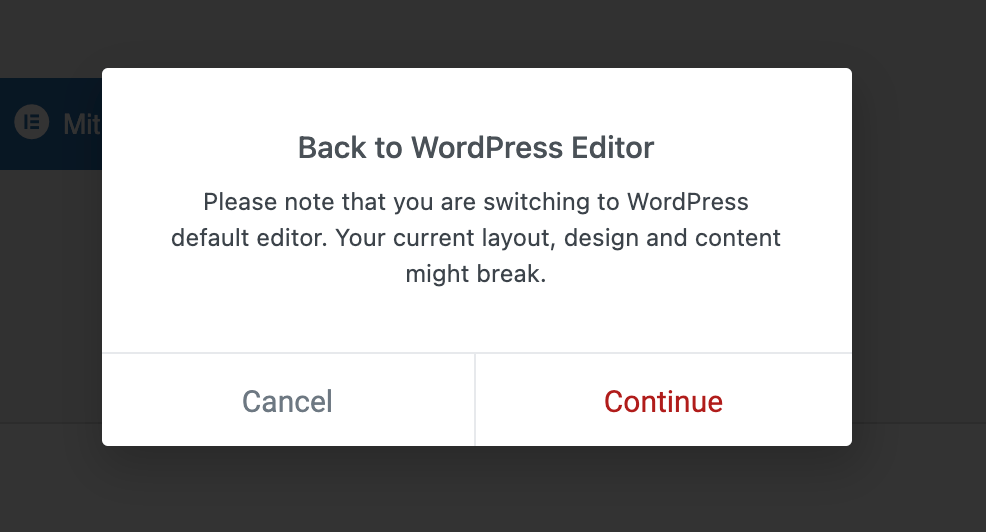 Das kann daran liegen, dass Sie in diesem Bearbeitungsmodus, der unten zu sehen ist, auf „Zurück zum WordPress Editor“ geklickt haben. Dann öffnet sich folgende Fehlermeldung (s.u.). Wenn Sie zurück ins normale Back-End wollen, müssen Sie auf das „W“ oben links klicken, wie in dem Screenshot zu sehen ist.