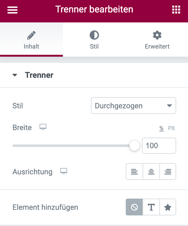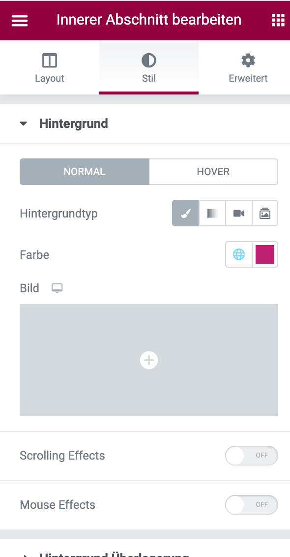 Mit einem inneren Abschnitt können Sie quasi zwei Spalten in einer Spalte erzeugen. Achtung! Sie können nicht unenedlich viele innere Abschnitte ineinander verschachteln. Den inneren Abschnitt können Sie wie den normalen Abschnitt bearbeiten, d.h. Rahmen, Hintergrund, Margin, Padding etc. lassen sich individuell einstellen.